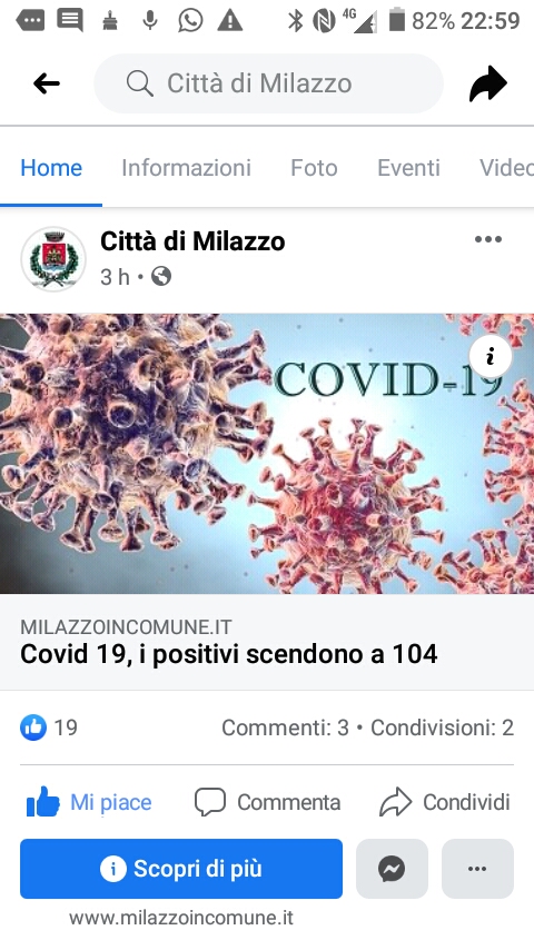 Primo giorno senza contagi. L’Usca ha comunicato i dati e a distanza di diverse settimane non ci sono milazzesi contagiati dal Covid.