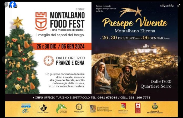 Un grande successo anche quest’anno per la rappresentazione premiata “Miglior Presepe di Sicilia”, giunta alla sua ventiduesima edizione, sarà accompagnata da “Montalbano Food Fest – una montagna di gusto”. Ha avuto inizio a partire da mezzogiorno, nelle stesse date, i visitatori a cena potranno degustare un’ampia selezione di prodotti tipici e primi piatti.