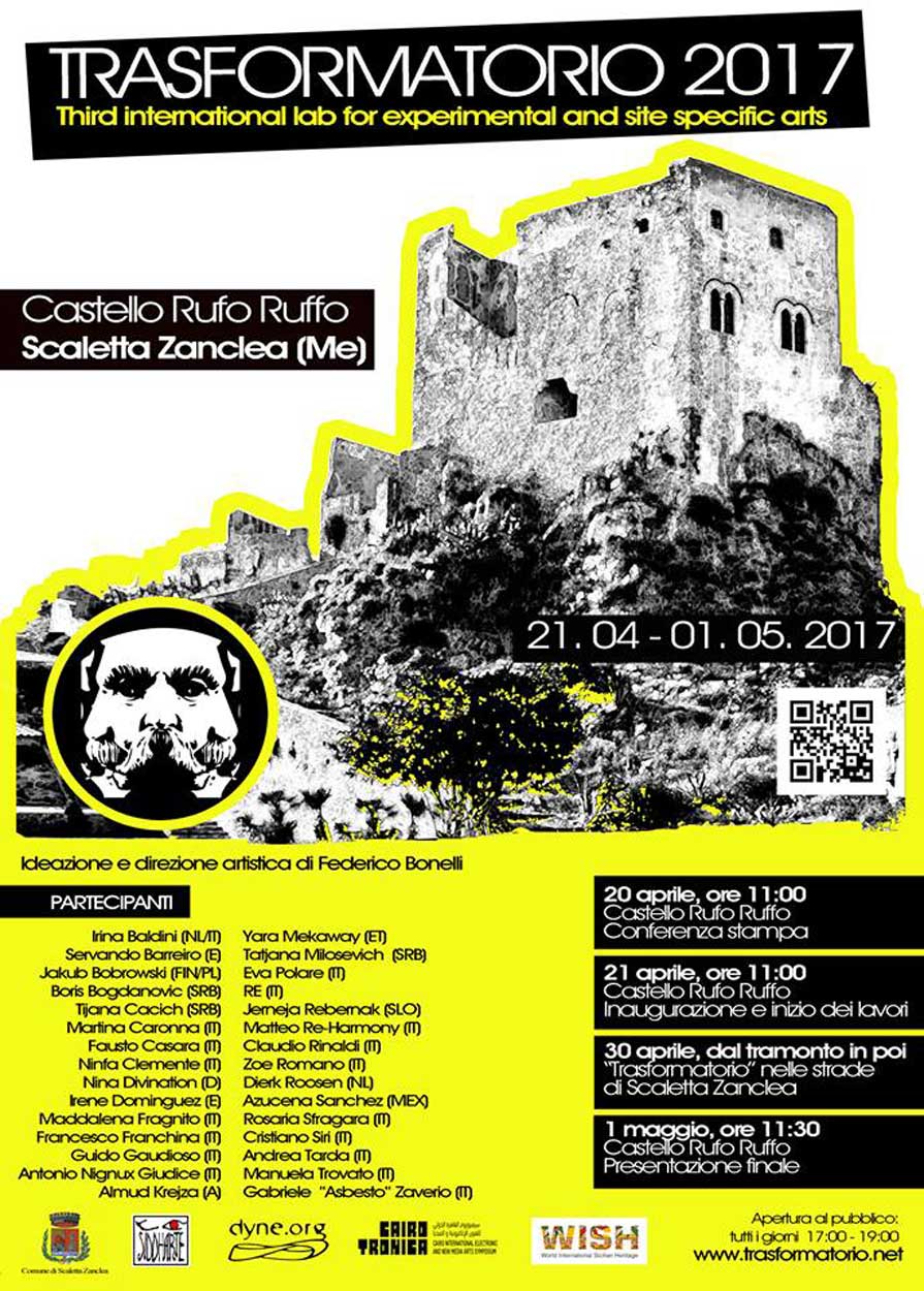 Dal 21 aprile al 1° Maggio 2017, il Castello Rufo Ruffo di Scaletta Zanclea ospita la terza edizione del Trasformatorio, laboratorio internazionale di arti performative, sperimentali e site specific che coinvolge 30 artisti provenienti da 11 nazioni.