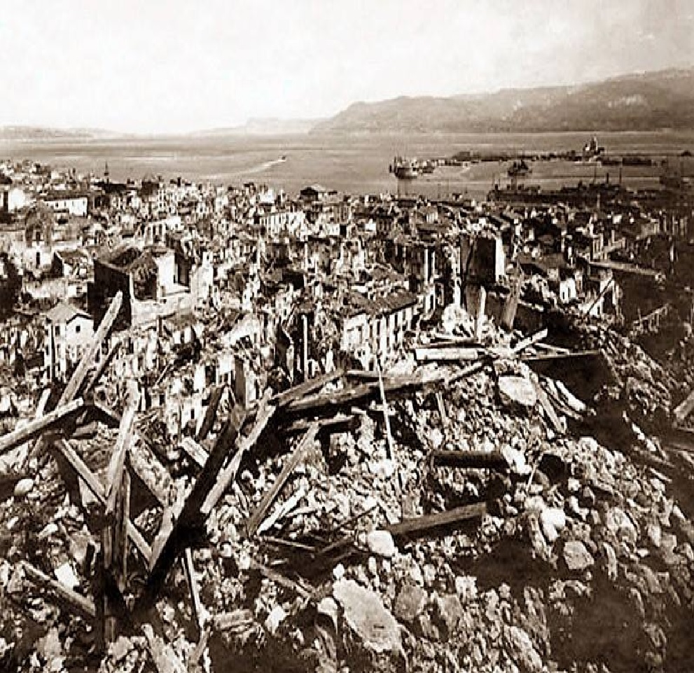 Quali peccati fece questa Messina/che è scomparsa in questa cattiva mattina?/E poi le fiamme che bruciano i palazzi/le case e quello che era rimasto all’impiedi///