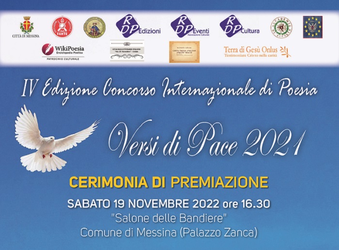 Sarà il Salone delle Bandiere” del Comune di Messina (Palazzo Zanca), il teatro delle premiazioni del concorso letterario Versi di Pace 2021, giunto quest’anno alla IV edizione e il cui inizio sarà dato alle ore 16.30 di sabato 19 Novembre 2021.