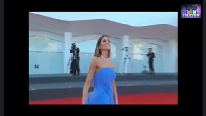Nell’ottava giornata della 78esima Mostra del Cinema di Venezia, Elisabetta Gregoraci ha catturato l’attenzione dei fotografi sul red carpet del Festival. Per l’occasione, la conduttrice ha sfoggiato un elegante abito azzurro dello stilista Mario Dice. L’abito, oltre a un lungo strascico e un corpetto che ricordava la corolla di una rosa, è stato impreziosito da numerosi gioielli come orecchini e collier di diamanti.