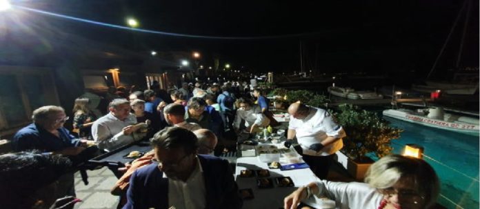 Un successo straordinario ieri per la “prima” serata di Cinemadivino. Il Marina del Nettuno ha visto accorrere oltre centoventi spettatori. Nell’arena all’aperto allestita in uno scenario mozzafiato, sullo sfondo la Madonnina del Porto con la nuova illuminazione artistica, nessun posto vuoto. Apprezzatissima la degustazione di pesce inserita nel progetto “Non solo Buddaci” che punta alla valorizzazione dei prodotti ittici dello Stretto. Ad approntare ogni cosa ben cinque chef e le loro brigate di cucina. Ai fornelli, oltre al padrone di casa, lo chef Pasquale Caliri del Marina, gli chef: Giuseppe Geraci ristorante Modì, Loredana Carere, ristorante La tovaglia Volante, Alessandro Greco Sous chef ristorante Modì, Francesco Arena panificio Masino Arena; chef Carmelo Oliveri. Tutti gli chef sono dell’ associazione provinciale cuochi Messina.