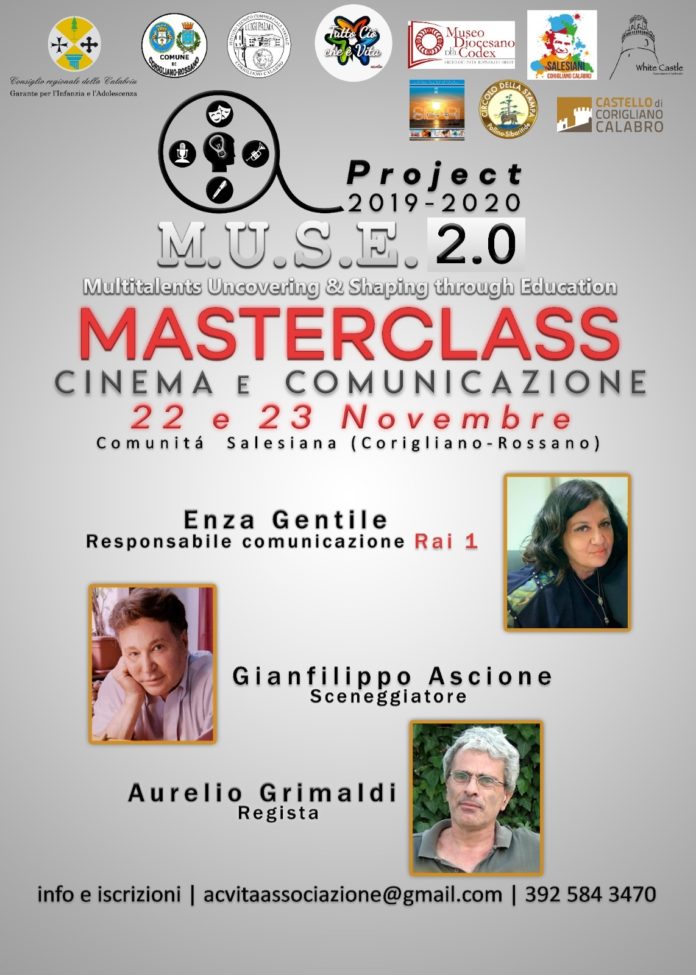 Lo scrivono dalla NC Media di Nicola Conticello per far sapere che: “Venerdì 22 novembre 2019 a Corigliano-Rossano (CS), si avvierà il progetto formativo M.U.S.E. 2.0 Multitalents Uncovering & Shaping Through Education. L’iniziativa si aprirà con una Masterclass di cinema e comunicazione”.