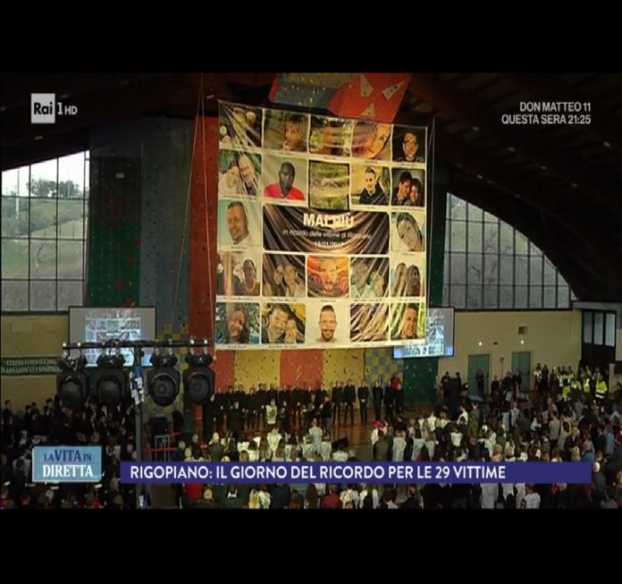 Oggi, a distanza di un anno dai fatti le vittime sono state ricordate in modo diverso, alle prime luci dell’alba quando ancora era buio, si è snodata una fiaccolata con 29 persone, tante quanti coloro che non ci sono più. Alle 10.30, un corteo lungo le vie del Paese è arrivato fino alla Chiesa “San Nicola Vescovo”, dove il presule di Pescara, Valentinetti ha celebrato una funzione religiosa. A partire dalle 14.30, presso il Palazzetto dello Sport di Penne, il “Comitato Vittime di Rigopiano” ha organizzato una cerimonia pubblica.