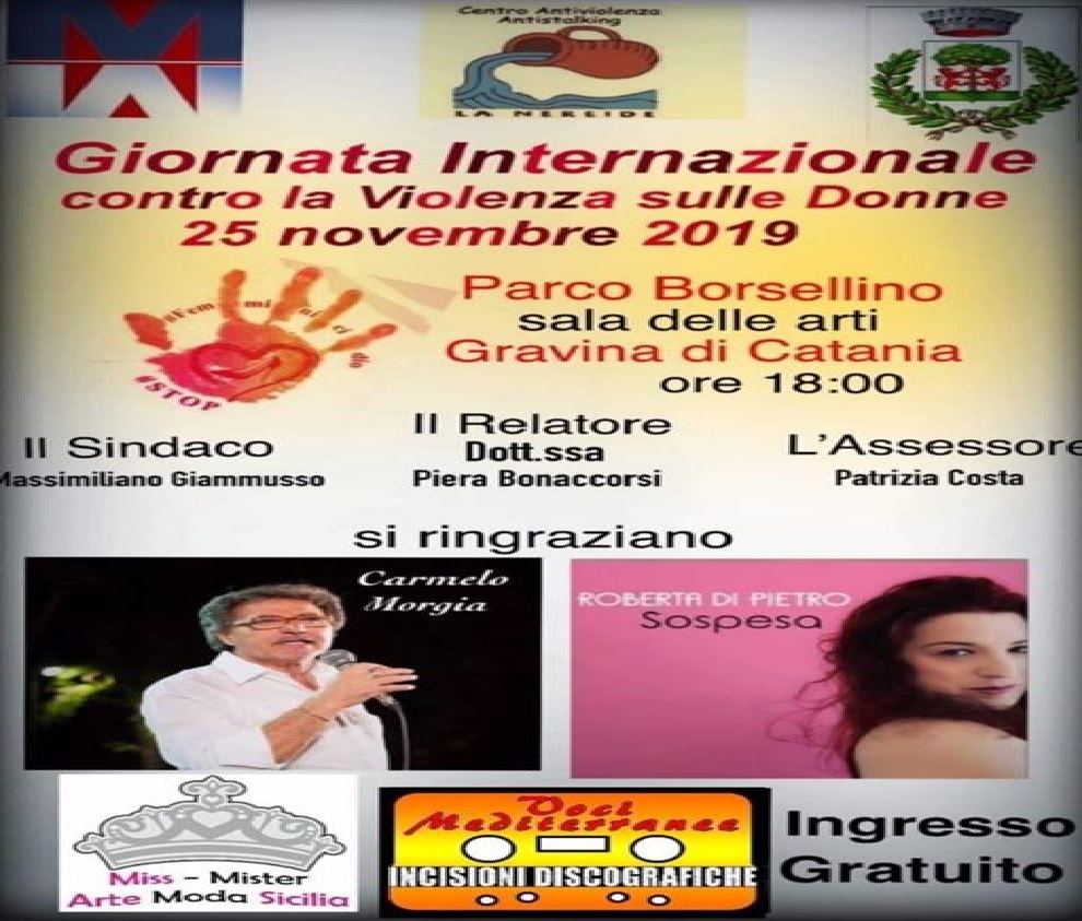 A Gravina di Catania: lunedì 25 novembre 2019, alle ore 18.00 presso la Sala delle Arti del Comune si terrà un importante evento. Nella circostanza menzionata, verrà celebrata la Giornata Internazionale contro la Violenza sulle Donne.