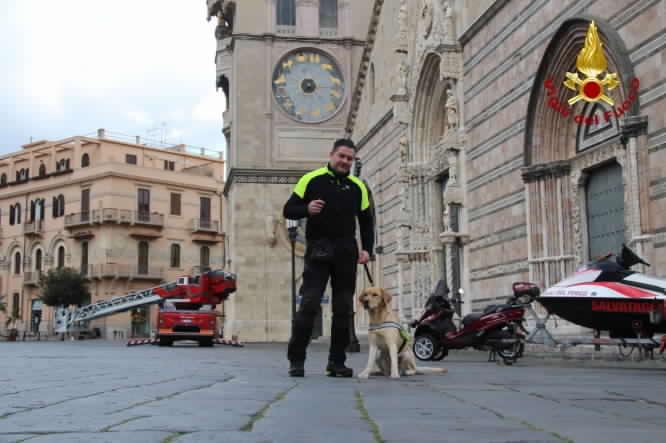 L’attività ha visto, per la prima volta impegnate, tre nuove unità cinofile: il labrador Grisù del Comando di Messina, il labrador Zoe ed il Border Collie Vega del Comando di Ragusa, con le quali si incrementa, significativamente, la capacità operativa del Nucleo. Grifù ha due anni ed è entrato a far parte del comando di Messina lo scorso ottobre. Il conduttore di Grisú è il vigile del fuoco Nicola Bombaci. Per quasi un anno è stato addestrato a Volpiano sede delle unità cinofile. Grisù è una preziosa risorsa che potrà essere utilizzata su tutto il territorio siciliano e nazionale in casi di disastri, per la ricerca di persone sotto le macerie.