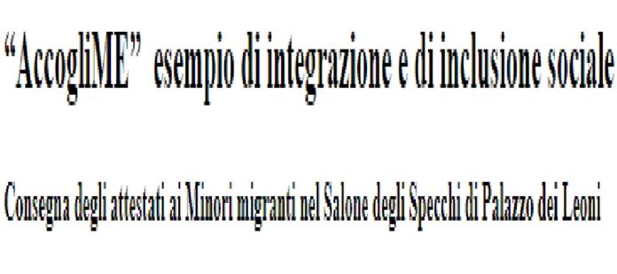 Si è svolto stamane, nel Salone degli Specchi di Palazzo dei Leoni, la cerimonia di consegna degli attestati di partecipazione, a conclusione della seconda annualità del progetto triennale “AccogliME” rivolto a minori stranieri non accompagnati. un progetto reso possibile dalla stretta sinergia tra l’Autorità Portuale di Messina, che ne ha curato il coordinamento e la programmazione attuativa, la Città Metropolitana, il Comune di Messina, l’Istituto Tecnico Economico Statale “A.M. Jaci” e Medihospes Cooperativa Sociale Onlus.