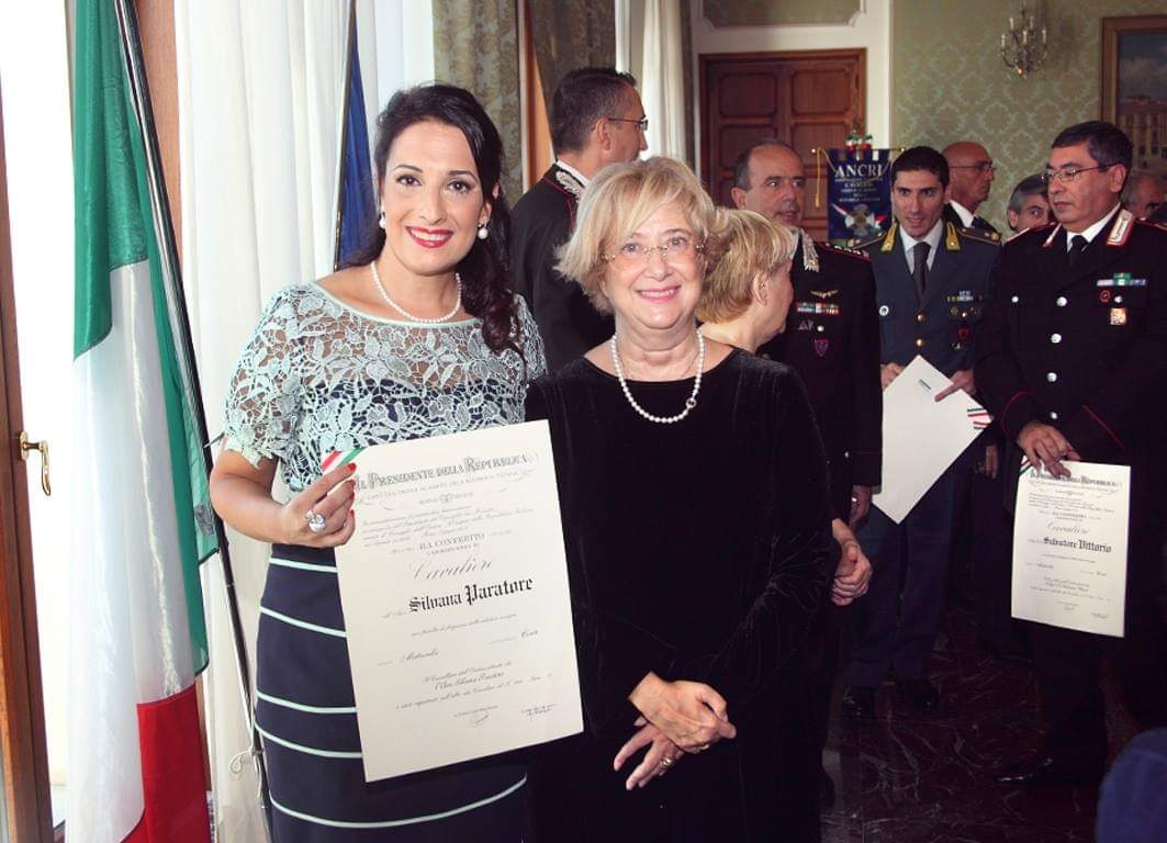 L’avvocato Silvana Paratore è stata insignita dell’Onorificenza di Cavaliere dell’Ordine al Merito della Repubblica conferitale con decreto del presidente della Repubblica italiana.