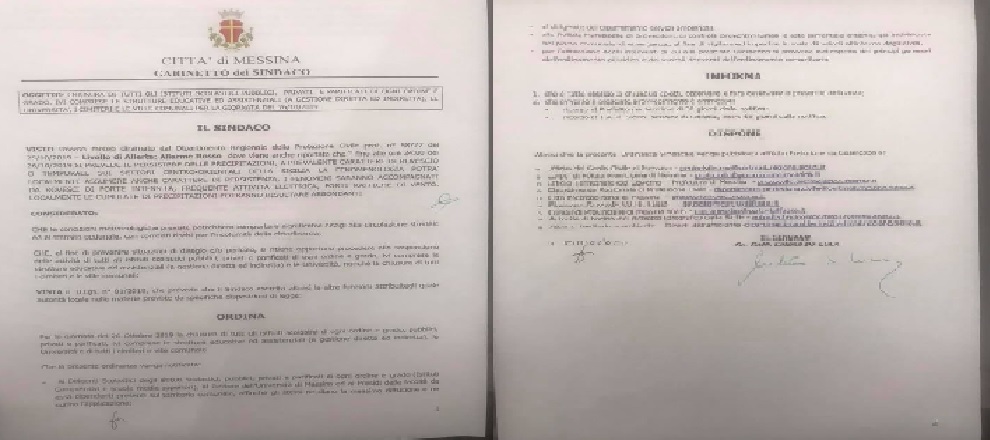 Lo ha scritto su Facebook, il sindaco di Messina, onorevole Cateno De Luca: “ordinanza di Protezione Civile per domani! Chiusura scuole, università, cimiteri e ville”!