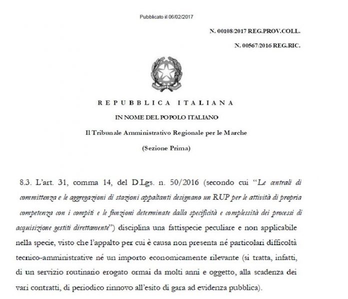 “Utilizzando il Regolamento approvato con deliberazione di G.M. n. 583 del 10.08.2017, si incrementano gli stipendi rimaneggiando la figura del R.U.P. a loro uso e consumo. Sentenza del TAR MARCHE 2017. E’ necessaria la revoca di queste determine. Potrebbe configurarsi il reato di -appropriazione indebita- o mi sbaglio?”.