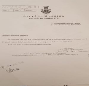 Di seguito la mia lettera di rinuncia all’indennità di sindaco di Messina.