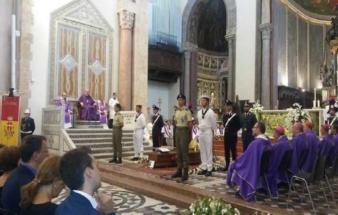 Questa mattina alle ore 11, presso il Duomo di Messina, si è celebrata una cerimonia funebre in suffragio dell’arcivescovo emerito monsignor Giovanni Marra, originario di Cinquefrondi e morto l’11 luglio scorso all’età di 87 anni mentre si trovava a Roma. Da oggi dunque, le sue spoglie sono custodite nella Città che tanto amò e lo adottò. Si trovano infatti, nella Cripta della Cattedrale.