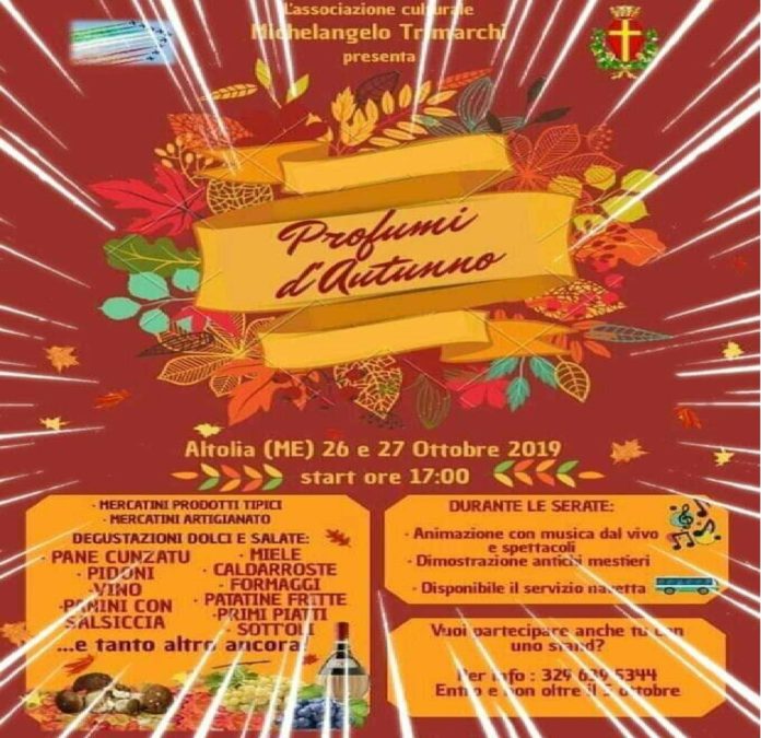 Ha precisato a nome degli organizzatori Gabriele Bonfiglio: “questo progetto, serve a favorire lo sviluppo della selvicoltura e tutte le attività connesse, per una riscoperta e valorizzazione del borgo cittadino assai ricco di tradizioni. La popolazione altolese, vuole, attraverso questa sagra autunnale denominata -Profumi d’autunno-, valorizzare i prodotti tipici come vino locale, funghi, olive, pane fatto in casa, pasta fresca, biscotti, pidoni e quanto di buono il vilaggio della zona sud, per vocazione e tradizione, riesce a portare sulle tavole dei messinesi”.