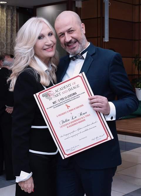 “Complimenti al nostro Fabio La Rosa di Messina, che ieri sera presso il Circolo Ufficiali dell’Aeronautica Militare -Casa dell’Aviatore- di Roma ha ricevuto l’Attestato d’Onore Accademico della Norman Academy Inc, e l’Attestato di Benemerenza ed il Titolo di Accademico Onorario -Not(t)e per la Leucemia-“.