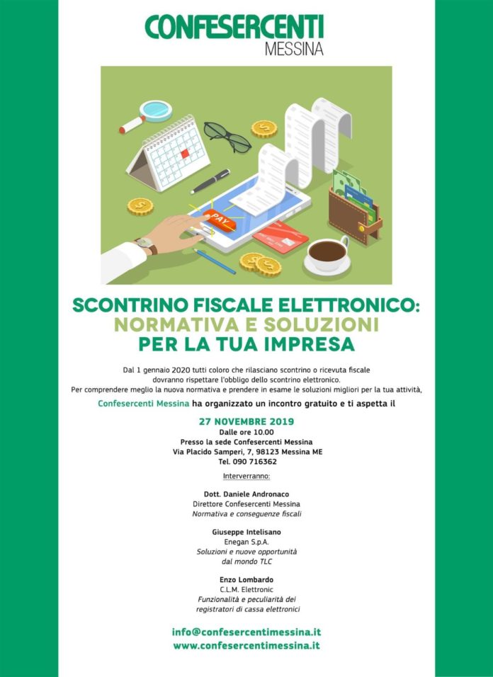 Per questo la Confesercenti organizza un seminario dal titolo “Scontrino elettronico: normativa e soluzioni per la tua impresa”; con l’obiettivo difornire chiarimenti e supporto alle aziende che presto dovranno adeguarsi alle nuove regole.