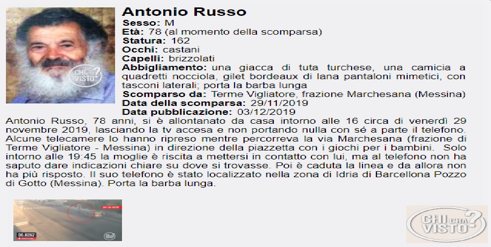 Non conosce sosta, l’attività di ricerca messa in campo dai vigili del Fuoco, dai volontari e dai carabinieri di Barcellona Pozzo di Gotto, per tentare di ritrovare il 78enne Antonio Russo scomparso da venerdì notte.