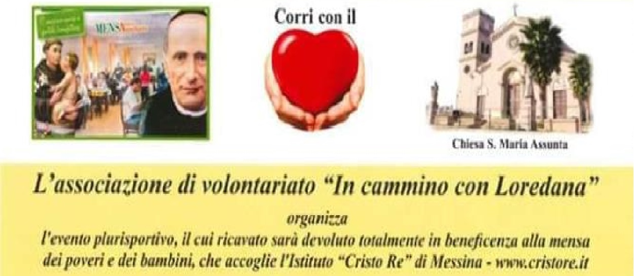 Oggi, martedì 14, alle ore 10, nella Sala Ovale di Palazzo Zanca, nel corso di una conferenza stampa, alla presenza dell’assessore alle Attività Sportive Giuseppe Scattareggia, sarà illustrato l’evento plurisportivo “Corri con il Cuore”, organizzato dall’Associazione di Volontariato “In Cammino con Loredana” in programma domenica 19 dalle 15 a Faro Superiore.
