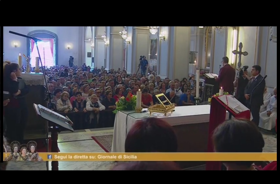 Dalla pagina Facebook, di un importante cronista siciliano, apprendiamo che: “dal Santuario di Trecastagni (CT), con il commento di Salvo La Rosa, la prima parte della diretta della FESTA DEI SANTI FRATELLI MARTIRI ALFIO, FILADELFO E CIRINO su Tgs (canale 15 del d.t. per la Sicilia), su RTP Messina (canali 517 e 646 del d.t. per Messina e la Calabria), su SKY 879 – Viva l’italia Channel (canale 875 e 879 di Sky), in streaming su www.gds.it e su www.rtptv.it. Un abbraccio forte #cututtuucori”.