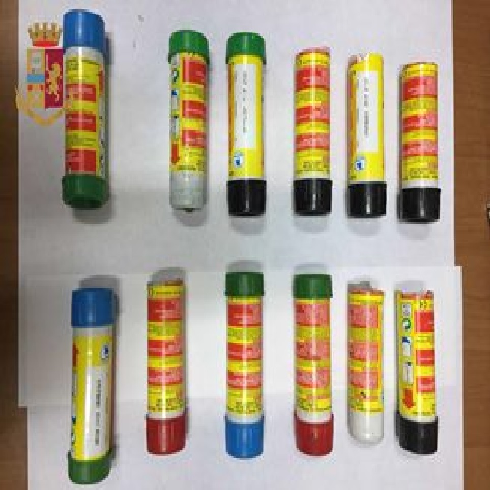 TROVATI IN POSSESSO, DI FUMOGENI E CINGHIE BORCHIATE, TUTTO MATERIALE OCCULTATO ALL'INTERNO DELLA LORO AUTO