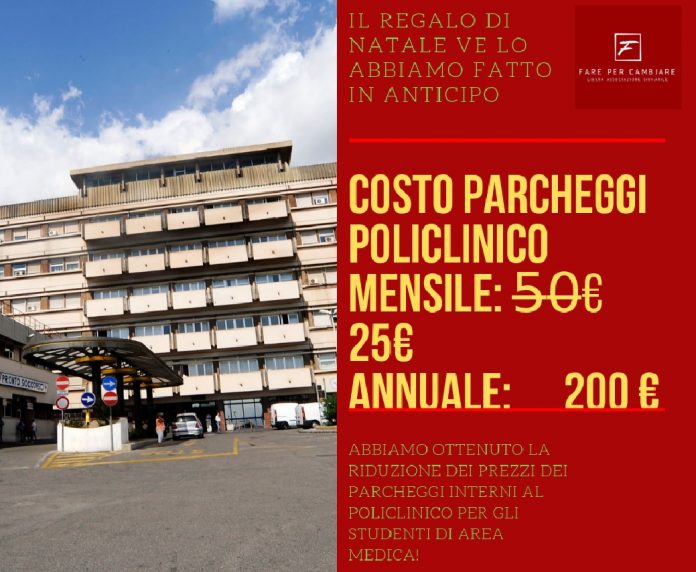 E’ servito un lungo lavoro e tanto impegno, un analisi ed una raccolta dati che desse fondamento alle richieste degli studenti, ma alla fine è fatta! Il prezzo dei parcheggi interni al Policlinico è stato dimezzato!