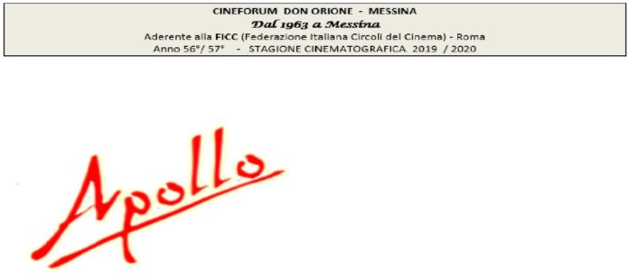 Cineforum nel segno della qualità cinematografica. Giovedì 26 settembre, alle ore 10.00, nella saletta a piano terra del Residence CineApollo di Messina, in via San Filippo Bianchi n. 23, il Cineforum Don Orione e la Multisala Apollo presentano in conferenza stampa l’edizione 2019/20 delle rispettive stagioni cinematografiche. Interverranno Loredana Polizzi, imprenditrice della Multisala Apollo, il presidente del Cineforum Don Orione Nino Genovese, storico del cinema, e Giuseppe Corallo, componente del Direttivo.