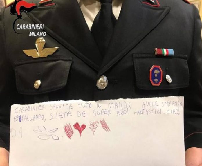 Il più grande dei due fratelli, ha scritto una lettera ai componenti dell’Arma, affermando: “carabinieri salvate tutto il mondo, a volte sparando e parlando. Siete dei super eroi fantastici. Ciao”!