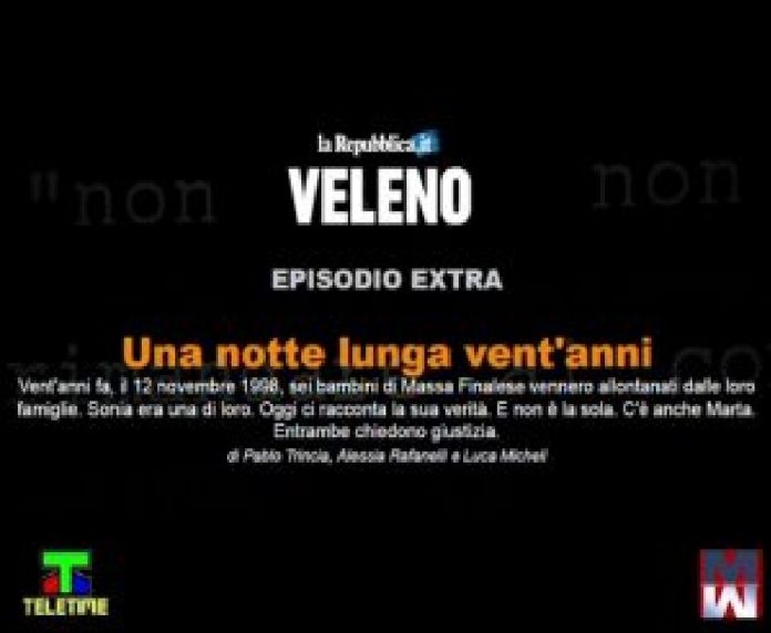 Si mette in luce, ciò che avvenne il 12 novembre del 1998, quando sei bambini di Massa Finalese vennero allontanati dalle loro famiglie. Sonia era una di loro. Oggi nella trasmissione che segue, racconta la sua verità. E non è la sola. C’è anche Marta. Entrambe chiedono Giustizia.