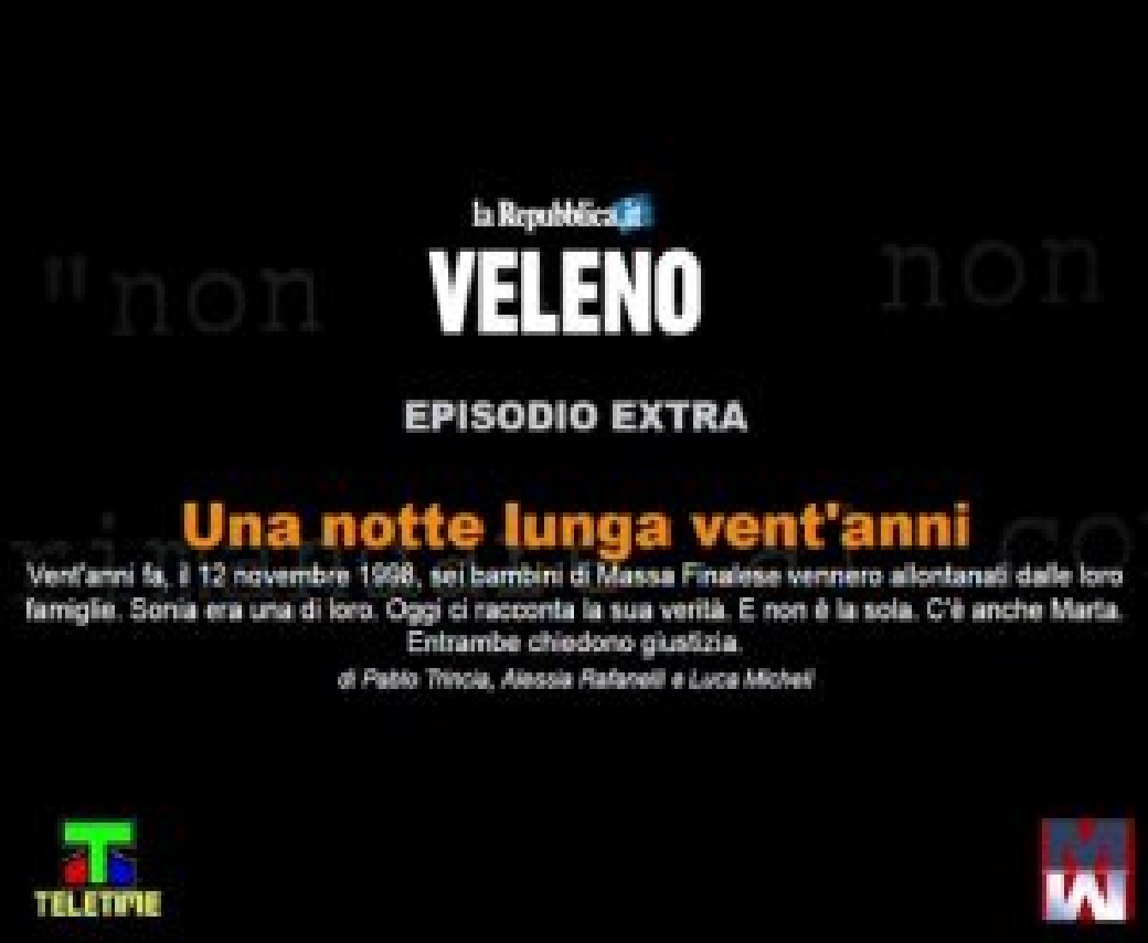 21 novembre 2018 – Ecco “Veleno extra”, la puntata speciale della web series ideata da Pablo Trincia e Alessia Rafanelli, in collaborazione con Luca Micheli. Se avete amato questo programma, andato in onda su Repubblica Tv, per favore aiutateci a condividerla ed a diffonderla.