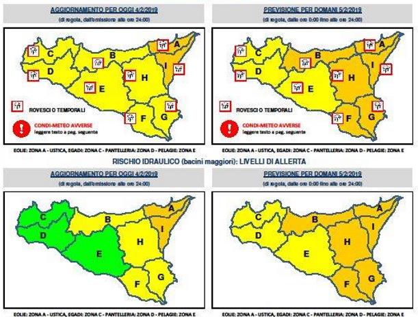 La Sala Operativa della Protezione Civile Regionale (Soris), ha reso noto, sulla base del bollettino di vigilanza meteorologico nazionale, che fino alle ore 24 del 5 febbraio un livello di criticità moderata di rischio idrogeologico ed idraulico per temporali interessera’ i Comuni delle zone di allerta A (versante tirrenico) ed I (versante ionico); un livello di allerta codice ARANCIONE e fase operativa di PREALLARME.