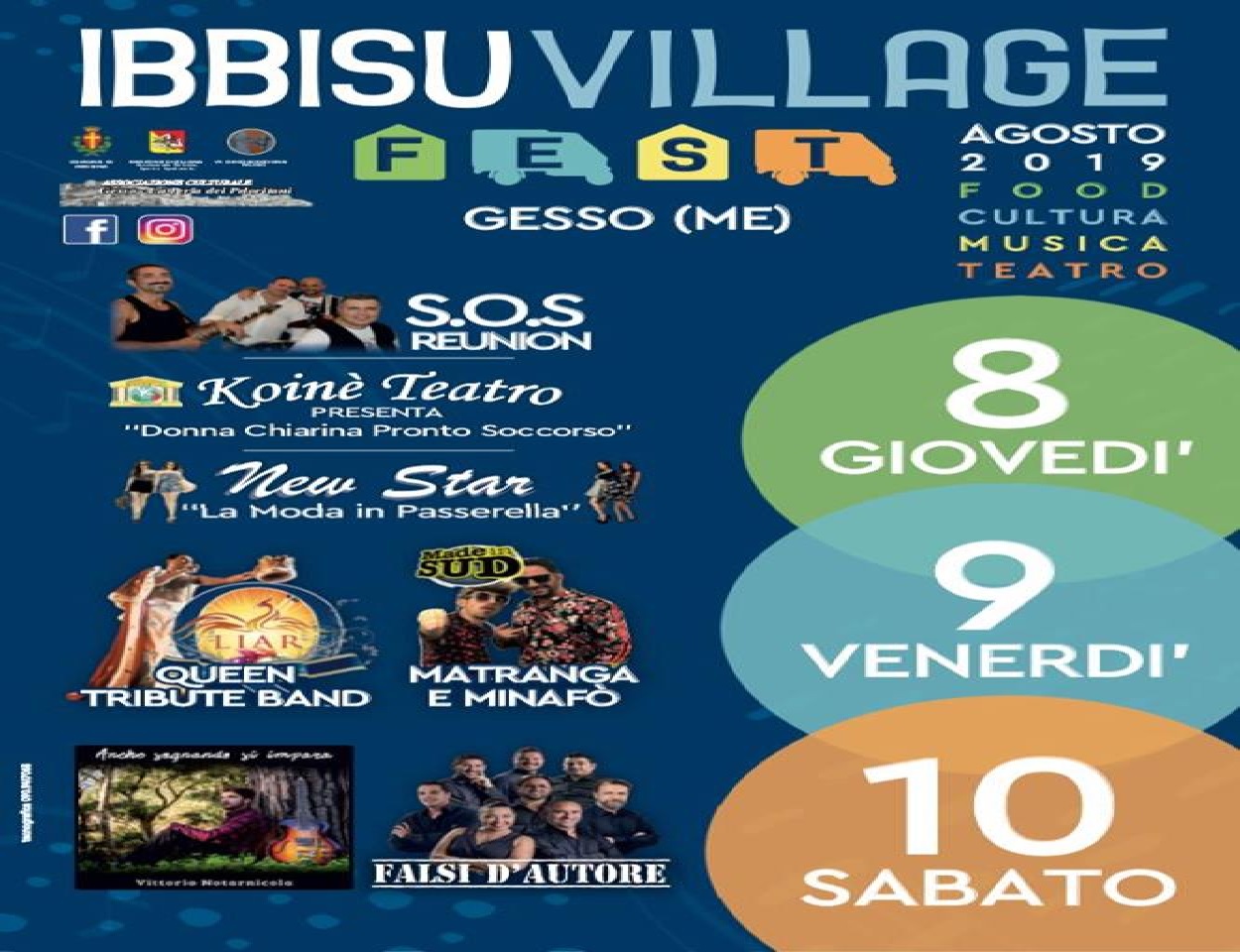 Presente l’assessore allo Spettacolo e alle Tradizioni Popolari Giuseppe Scattareggia, domani, martedì 6, alle ore 10, nella Sala Commissioni di Palazzo Zanca, sarà presentata alla stampa la manifestazione “Ibbisu Village Fest”.