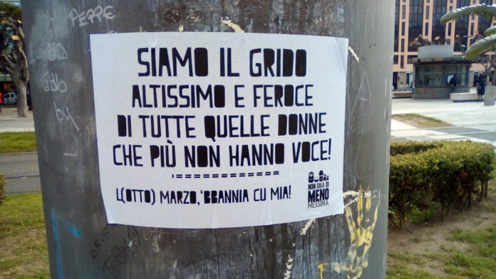 Scrive il collettivo Non una di meno – Messina: “la scorsa settimana, nel giro di 48 ore si sono consumati 3 femminicidi in Sicilia e altri 4 sul resto del territorio italiano. FEMMINICIDI. Chiamiamoli con il loro nome. Tre donne sono state uccise per mano di uomini. Mentre la stampa spiega il tutto come puri e semplici atti di gelosia, noi vogliamo ribadire che la violenza sulle donne, che vede nei femminicidi la punta di un iceberg molto più grande”.