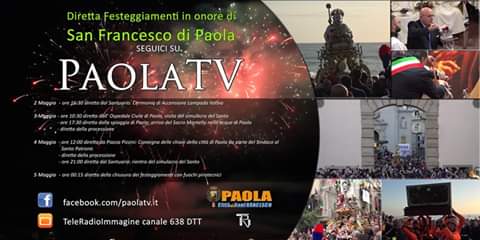 In collegamento con “Paola Tv”, la trasmissione della cerimonia di accensione della lampada, in onore di San Francesco, santo della cittadina in Provincia di Cosenza