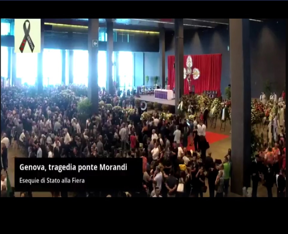 18 agosto 2018 – In diretta dalla “Fiera di Genova”, trasmettiamo la cerimonia dei Funerali di Stato per le vittime di ponte Morandi, alla presenza del presidente della Repubblica Sergio Mattarella e celebrati dal cardinale Angelo Bagnasco arcivescovo del capoluogo ligure.