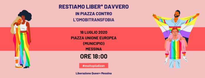 Noi di Liberazione Queer+ Messina non accettiamo che la nostra società e la nostra città siano nelle mani di persone che scambiano il diritto di opinione con un diritto di oppressione. Per questo rispondiamo al loro appello e alle 18 porteremo in piazza Unione Europea le nostre rivendicazioni nel rispetto delle normative sulle misure anti-covid, porteremo i nostri corpi stanchi di subire violenze, di subire insulti, di essere discriminati. Diffonderemo cultura ballando, cantando, mostrando le nostre vite come manifesto politico queer e froc*, che rappresentano oggi più che mai la nostra voglia di libertà.