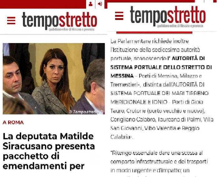 Ed ancora, per terminare sottolinea la parlamentare grillina: “la Siracusano non si risparmia e chiede l’Istituzione della sedicesima autorità sistemica dello Stretto. Peccato che ci abbiamo già pensato noi del Movimento 5 Stelle. Sarà felice, credo, e ci ringrazierà presto! Ma un articolo non si nega a nessuno”.