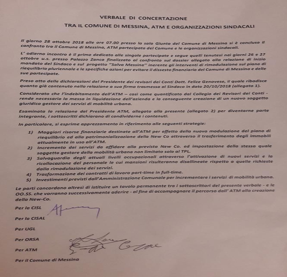 “All’Atm sarà trasferita la proprietà dell’immobile di via La Farina. Saranno incrementati i Servizi da affidare alla nuova Atm. E’ garantita la salvaguardia di tutti i posti di lavoro anche attraverso la riqualificazione dei profili professionali in esubero”.