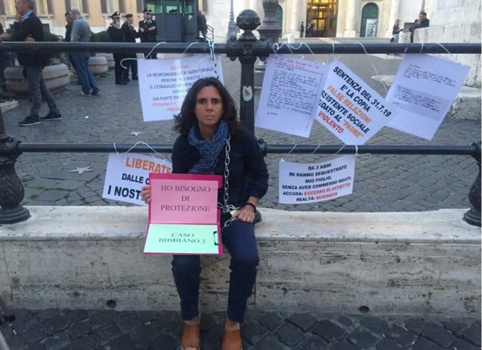 “Sono incatenata qua a piazza di Monte Citorio per difendere mio figlio, ma tutti i bambini. Via le catene per tutti bambini, non si vedono ma ce l’hanno”. Lo ha detto in un breve filmato di testimonianza, la mamma Giada Giunti di Roma, alla quale a luglio il Tribunale ha tolto il figlio affidandolo all’ex marito maltrattante.