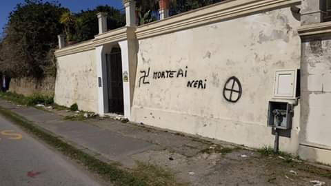 Stamane a Granatari in via Consolare Pompea nella Citta’ dello Stretto sono comparse su un muro di una villa privata le scritte: “MORTE AI NERI – W SALVINI, A MORTE I NERI”.