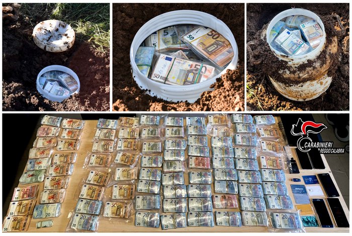 (ANSA) – REGGIO CALABRIA, 26 NOV – Banconote per un valore totale di 478mila euro sono state trovate dai carabinieri del Comando provinciale di Reggio Calabria all’interno di un bidone interrato in un fondo attiguo ad una abitazione.