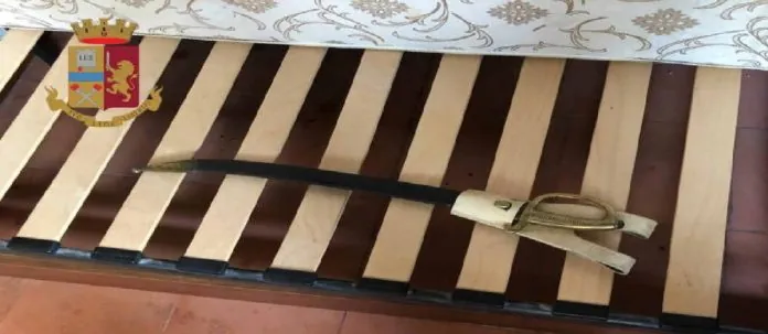 Le indagini avevano portato all’individuazione di tre soggetti, tutti residenti ad Acquedolci, che ieri sono stati sottoposti a perquisizione domiciliare. Nell’ambito delle operazioni, in un casolare di campagna, gli agenti del Commissariato, dopo accurate ricerche, hanno rinvenuto tra il materasso ed un letto matrimoniale, un’arma bianca, in particolare una sciabola ordinariamente in uso ad ufficiali e sottufficiali di una Forza di Polizia militare. Dagli accertamenti immediatamente esperiti, si è accertato che l’arma apparteneva ad un militare deceduto e che avrebbe dovuto trovarsi presso la residenza del predetto. Alla luce di quanto accertato, l’uomo perquisito è stato denunciato anche per detenzione illegale di arma.