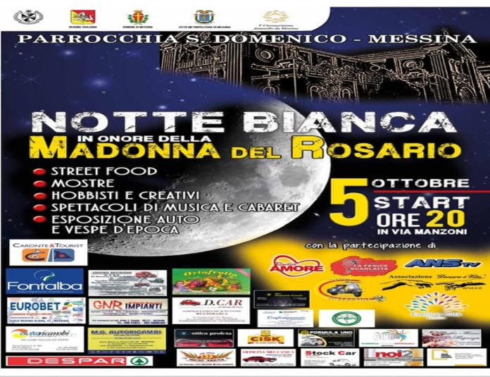 Lo scrivono, gli organizzatori, di un importante momento di fede in Città: “dopo il successo dell’anno scorso torna anche quest’anno la seconda edizione della Notte Bianca in occasione dei festeggiamenti della Madonna del Rosario. Quest’anno ricorrono anche gli 800 anni dall’arrivo dei domenicani a Messina”.