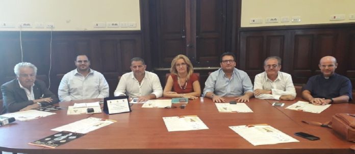 Gli assessori, allo Spettacolo e Tradizioni Popolari Giuseppe Scattareggia, al Turismo Dafne Musolino ed alla Protezione Civile Massimiliano Minutoli, insieme ai rappresentanti del comitato Vara di Messina Franz Riccobono e Nino Di Bernardo, hanno illustrato stamani alla stampa il programma delle iniziative per la Vara edizione 2019.
