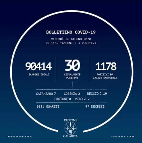 In Calabria ad oggi sono stati effettuati 90.414 tamponi. Le persone risultate positive al Coronavirus sono 1.178 (+3 rispetto a ieri), quelle negative sono 89.236.