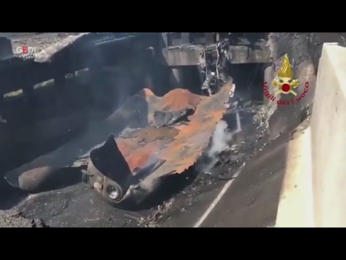 UNA BISARCA CARICA DI AUTO, HA TAMPONATO UN CAMION CARICO DI MATERIALE INFIAMMABILE, IMMEDIATA L'ESPLOSIONE CHE SI E' SENTITA IN TUTTA LA CITTA'