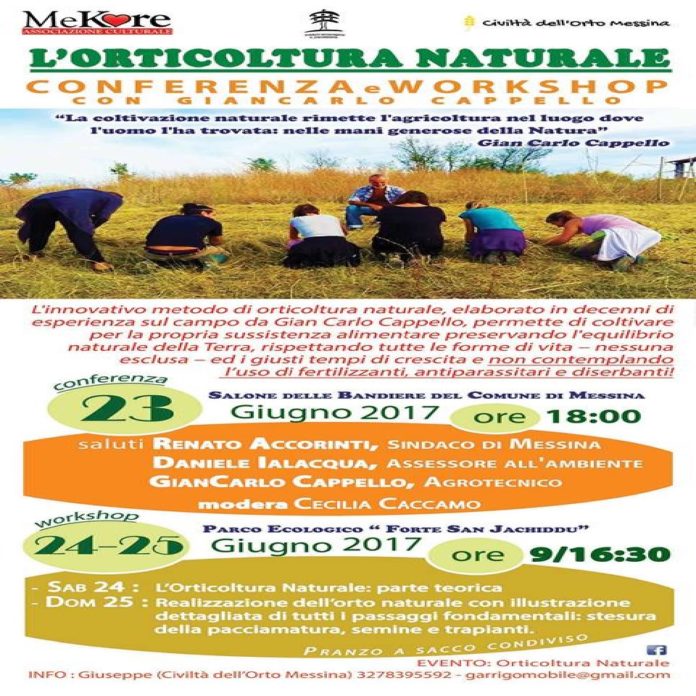 Dagli organizzatori entrando nello specifico, si tiene a far emergere che: “dal 23 al 25 Giugno 2017, a Messina, vi saranno tre giorni dedicati al metodo elaborato, nell’arco di un decennio, da Giancarlo Cappello. Cappello ha messo in atto, un approccio all’agricoltura che rappresenta una vera e propria filosofia di vita, un ritorno alla Madre Terra fatto di profondo rispetto di ogni forma di vita! Un metodo che senza inquinare riesce a dare risultati straordinari ed a creare comunità”.
