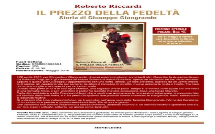 Su “www.blogsicilia.it”, uno dei principali quotidiani online siciliani, in un suo articolo si scrive: “domani alle ore 10.30, nella sala -San Benedetto- del Complesso monumentale Guglielmo II, verrà presentato il volume scritto dal colonnello Roberto Riccardi, edito dalla Mondadori, dal titolo: -Il prezzo della fedeltà. Storia di Giuseppe Giangrande-“.