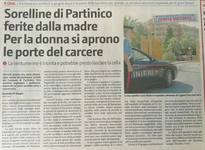 Da qualche giorno, si è registrata una importante novità nell’ambito della vicenda che riguarda le due sorelline partinicesi di 2 anni e mezzo e 17 mesi, che la madre picchiava tanto da causarne il ricovero in ospedale ed in tempi diversi.