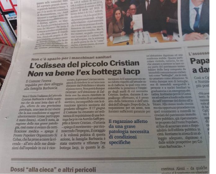 Cristian Barbuscia il ragazzo di 16 anni che viveva alle “case fantasma” di Zafferia (ME), purtroppo non ce l’ha fatta, è morto. Il piccolo respirava con un solo polmone, ragion per cui aveva necessità di particolari apparecchiature oltrechè di una bombola di ossigena.