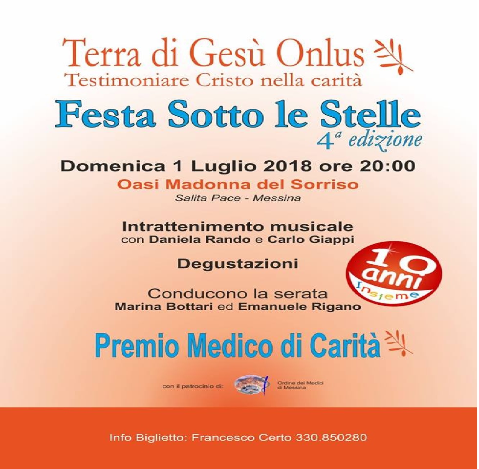 E’ stata presentata questa mattina, la 4^ edizione della “Festa Sotto le Stelle” organizzata dall’Associazione “Terra di Gesu’ onlus” presieduta dal dottor Francesco Certo e giunta al decimo anno di attività.
